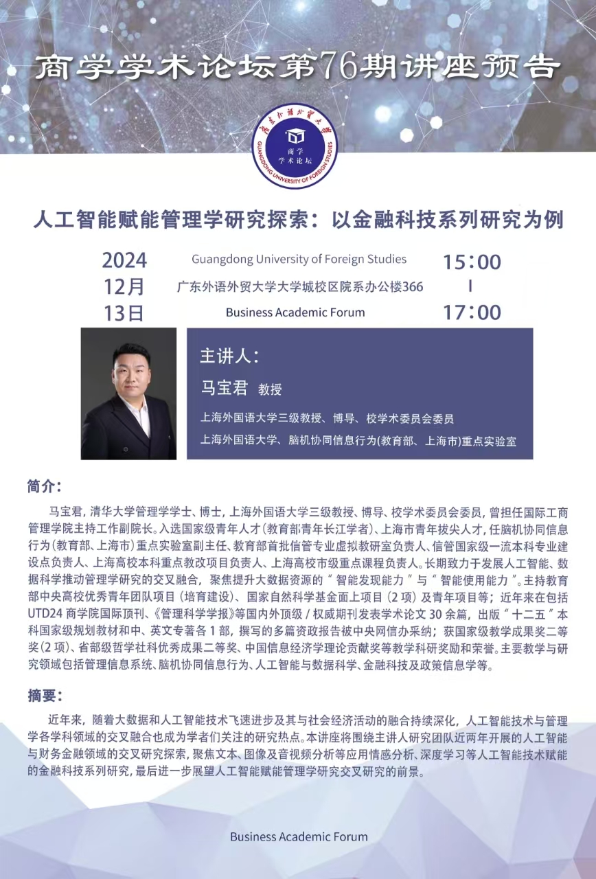 上一条:商学学术论坛第77期讲座预告 The Side Hustle Paradox:Understanding Resource Dynamics in Dual Career Development