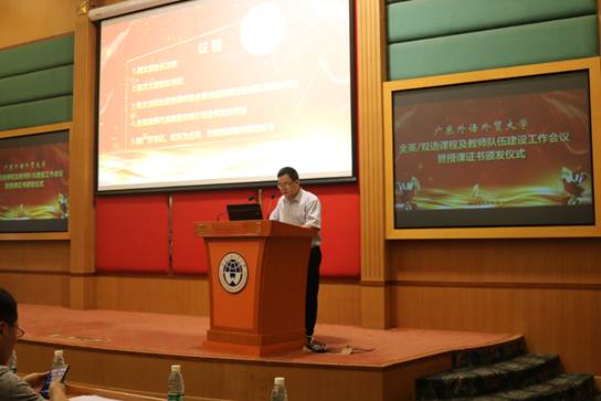 大会开始后,焦方太副校长发表了讲话。焦方太副校长指出,发展全英/双语教师团队和课程建设,是广外推进国际化特色的重要内容,他要求,首先,学校需做好规划,稳步推进全英教学建设,未来计划建设7-10个全英授课平台,全英/双语授课的师资也要达到总体师资的45%以上。其次,应全面提升全英/双语课程的授课质量和教学效果,同时,学校还应完善相关制度,支持更多的老师参与到全英/双语教学中。期间,他特别肯定了bevictor伟德和商英学院在全英/双语课程建设中取得的成绩。